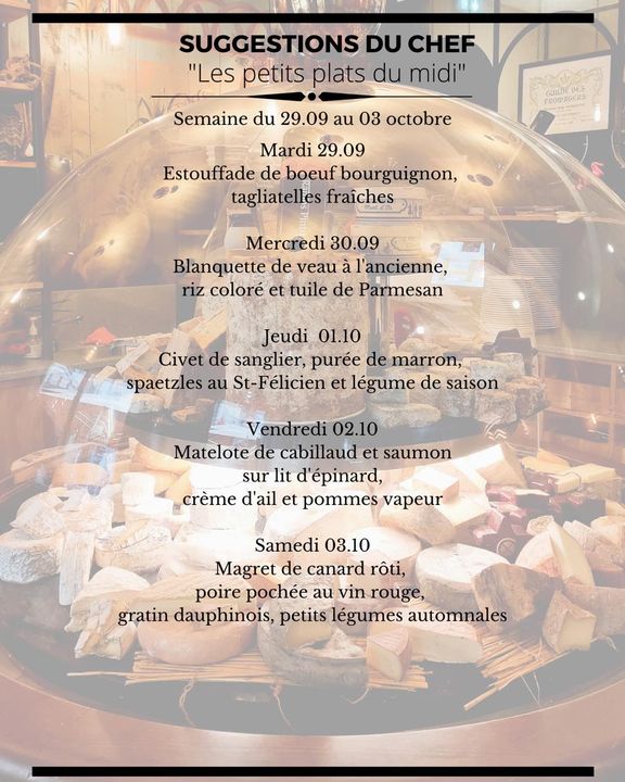 Bonjour à tous ????????, Nouvelle semaine, Nouveau programme du Chef???????????? !!! Alors en attendant ce mardi, On se réchauffe aujourd’hui autour d’un aligot, d’une raclette ou de l’une de nos savoureuses fondues ! Bon dimanche ☀️???? !