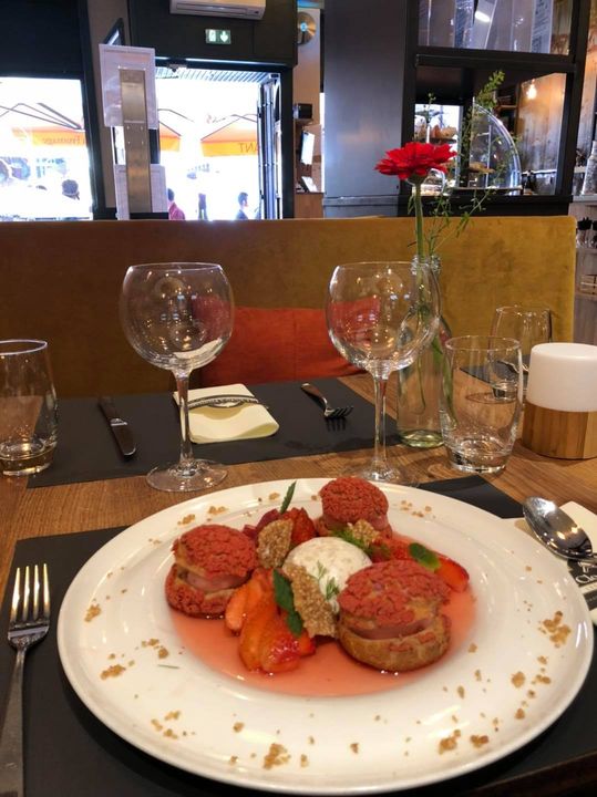 Pour la Fête de nos Mamans, Romain, notre Chef ????‍???? propose pour finir en douceur : Déclinaison autour de la fraise, sirop parfumé et crémeux de riz au lait