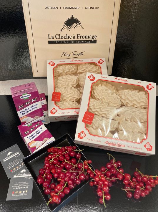 Des invités surprises? Voici un dessert divin réalisé en un tour de main! Meringues suisses, crème de la Gruyère et fruits de saison! A toujours avoir en stock! ????????