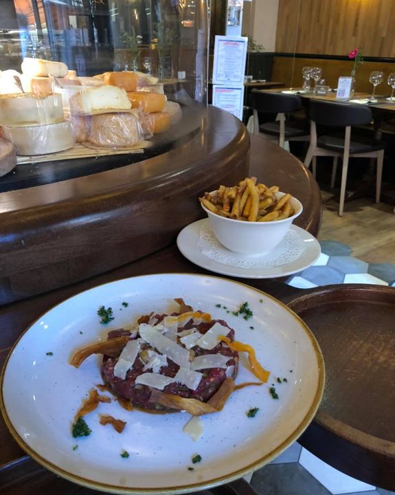 Bonjour Aujourd’hui mardi 31.08 Le Chef ???????? nous propose en plat du jour : Tartare de bœuf -Angus- coupé au couteau Frites fraîches, copeaux de Parmesan et mayonnaise à l’ail des Ours !! Bon Appétit ????