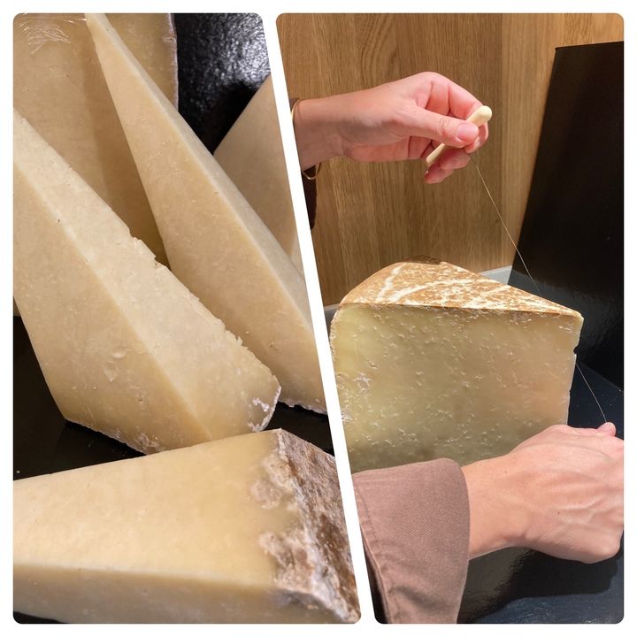 Aujourd’hui on vous fait découvrir une technique de découpe fromagère peu connue: la coupe en diamant ! ???? Adaptée aux fromages de type Cantal, Laguiole, Parmesan! Coupe nette et précise, c’est pas le moment de trembler ! ????