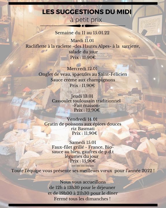 Bonsoir à tous ! Selon les prévisions météo, il est annoncé une vraie semaine hivernale ???? Alors, prévoyez gants, écharpe ????et bonnet ????, nous on s’occupe d’adapter le menu ! Bonne semaine à tous ???? !