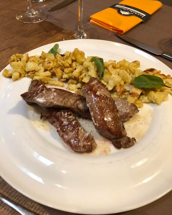 Bonjour ???? Ce midi, le Chef ???????? vous propose son fameux Onglet de veau à la crème et aux champignons Et ses spaetzles au Saint-Félicien ???????????? À toute à l’heure !