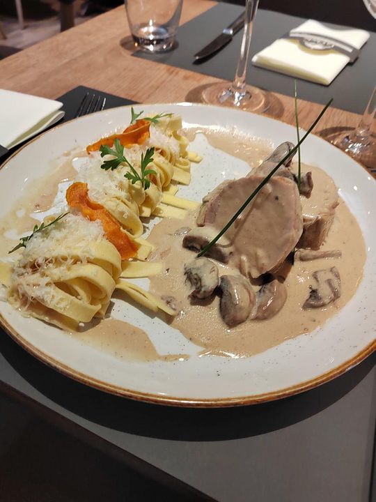 Hello ???? Pour rappel, à midi en suggestion ce sera : Médaillon de veau, sauce aux champignons des bois, spaetzles au Saint-Félicien !! Pour qui nous en réservons ???????????????
