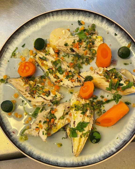 Bonjour ????, aujourd’hui pour votre pause déjeuner : filets de maquereau au vin blanc, tombée de poireaux et pommes vapeur ????. À plus tard !
