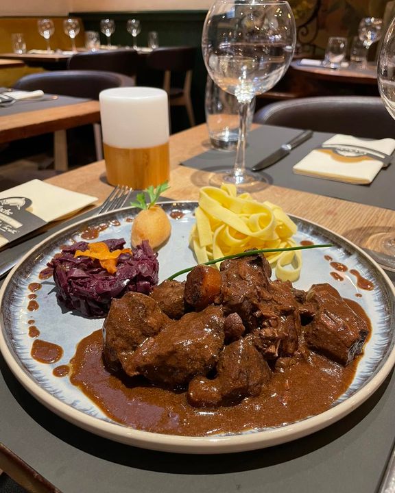 Bonjour ???? Ce midi pour votre pause déjeuner : Civet de sanglier aux airelles Coing poché au vin chaud Et tagliatelles fraîches ????????️ À toute à l’heure