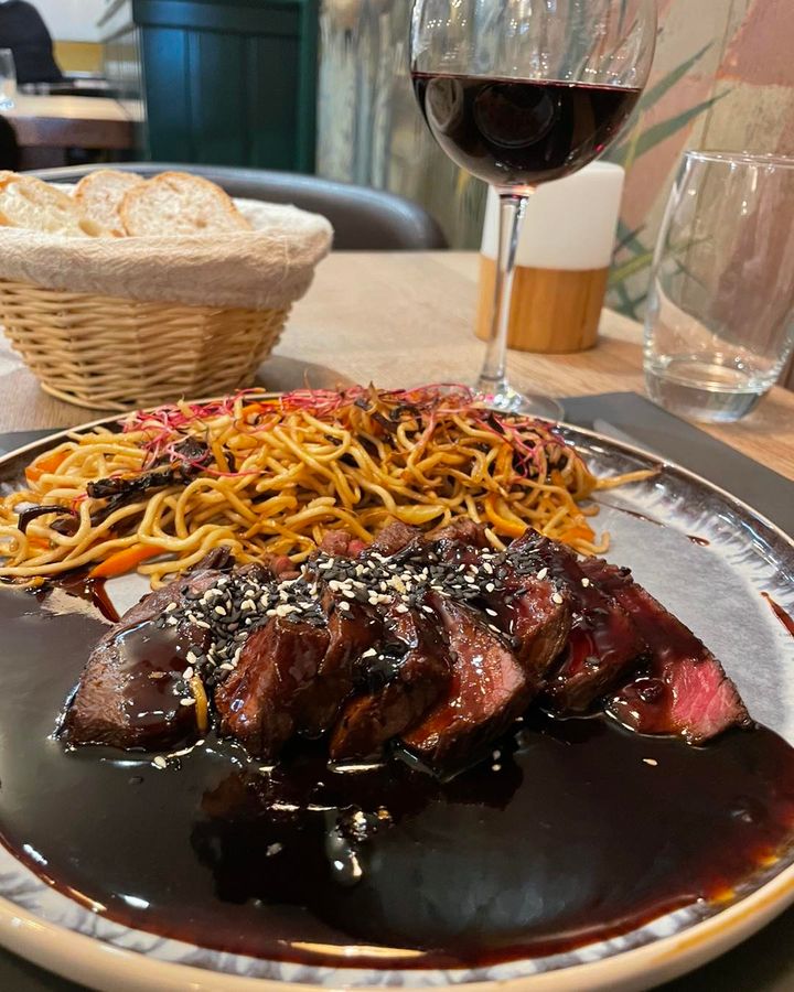 Bonjour ???? Aujourd’hui pour votre pause déjeuner, Ce sera : Tataki de bœuf au sésame Et nouilles sautées aux légumes ????????️ À toute à l’heure ????