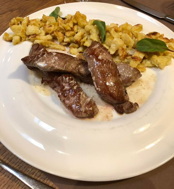 Hello ????! Ce midi, c’est notre emblématique Onglet de veau, sauce crème aux champignons Et spaetzles au Saint-Félicien Qui vous attend ????????????️! Pensez à le réserver !!