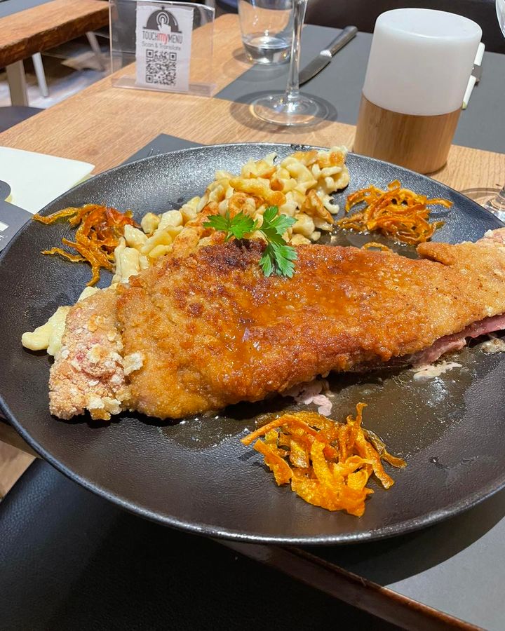 De retour à midi : Le cordon bleu de volaille au Munster Et sa sauce crème aux champignons ????????! Pensez à le réserver, quantité limitée !