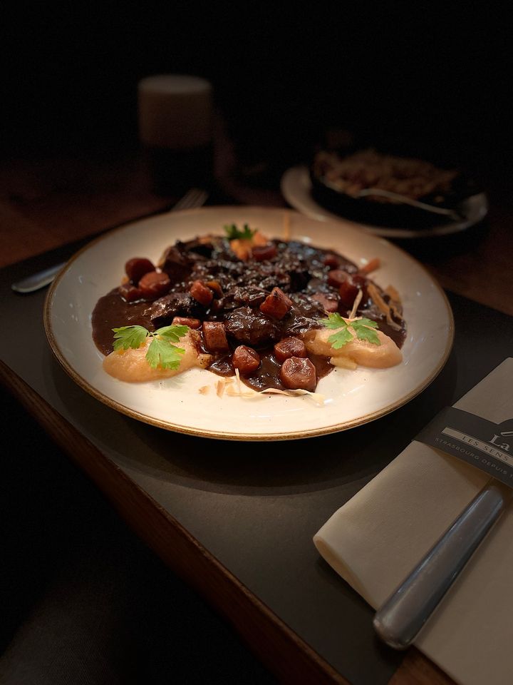 Ce mardi au menu du jour : boeuf Stroganoff et sa mousseline de pommes de terre au Brillat Savarin !???? #strasbourg #alsace #laclocheresto #food #fromage #cheeselover #restaurant #platdujour #restaurantstrasbourg