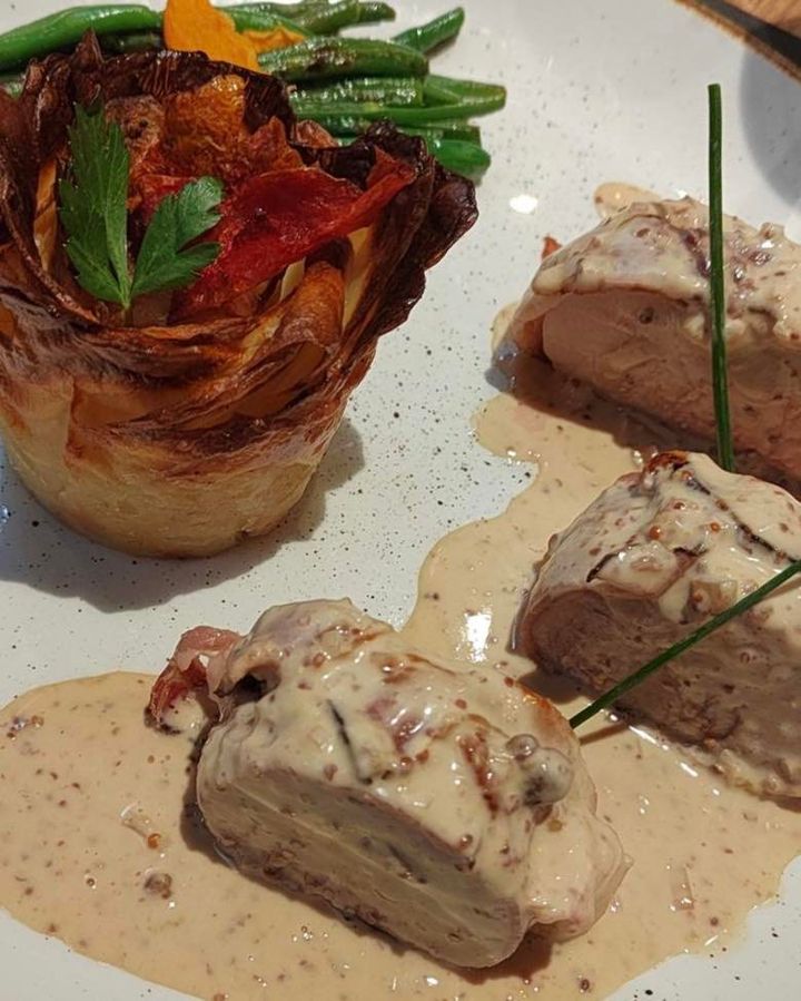Bonjour 👋 Pour ce midi, Romain 👨🍳 nous prépare Un Filet mignon de porc Orloff Et sa sauce moutarde 😋 À toute à l’heure #strasbourg #alsace #laclocheresto #food #fromage #cheeselover #platdujour #restaurantstrasbourg