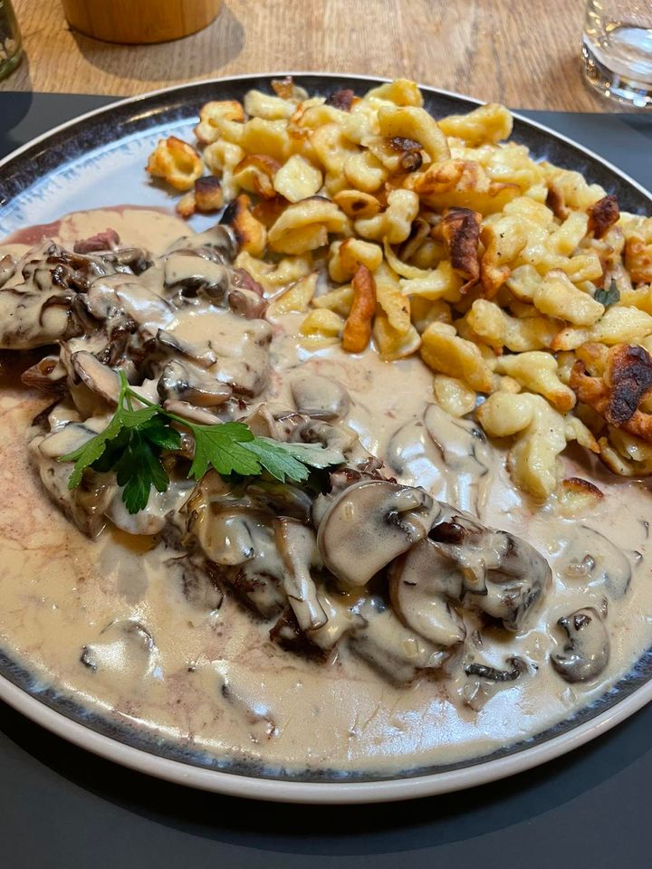 Coucou 👋 Ce midi, venez vous régaler avec notre onglet de veau à la crème et aux champignons et ses spaetzles au Saint-Félicien 😋 #strasbourg #alsace #laclocheresto #food #fromage #cheeselover #restaurant #platdujour #restaurantstrasbourg