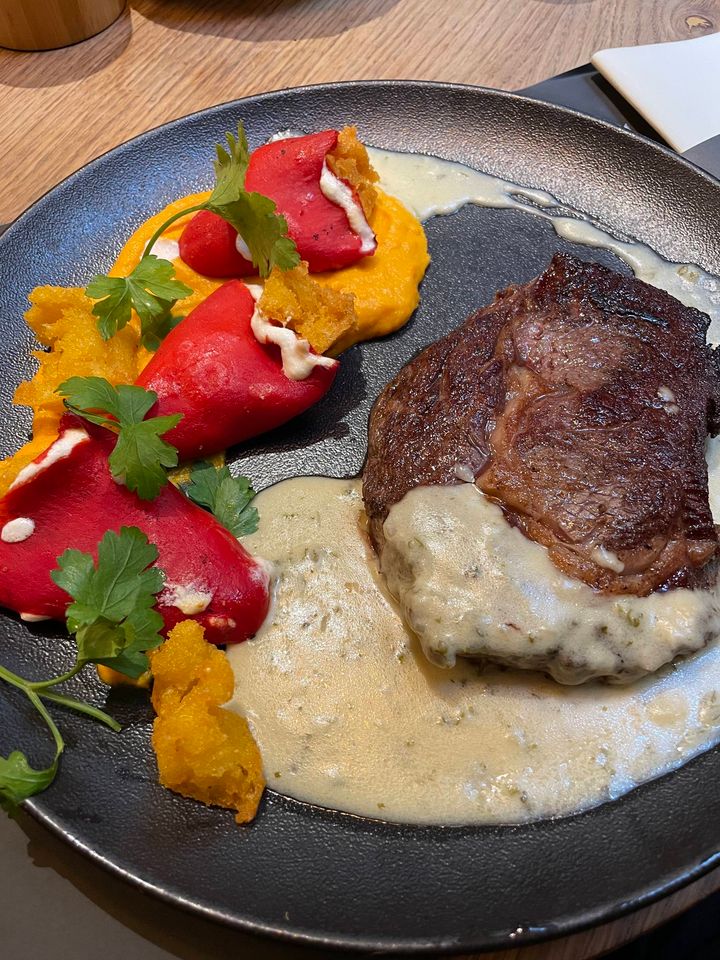 Pour finir la semaine, nous vous proposons au déjeuner : Un faux-filet grillé et son condiment chimichurri piquillos farcis au chèvre frais et pommes dauphines ! 😋 #strasbourg #alsace #laclocheresto #food #fromage #cheeselover #restaurant #platdujour #restaurantstrasbourg
