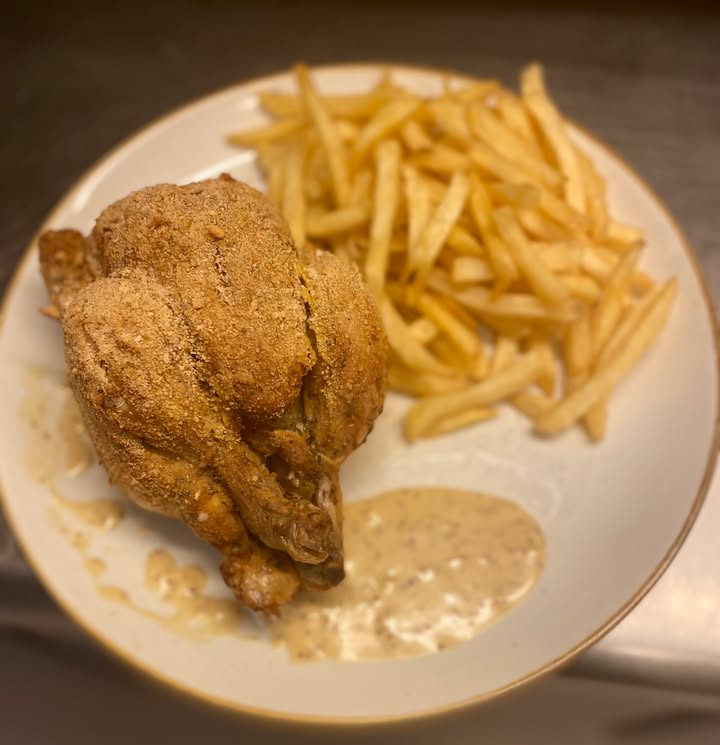 Bonjour, Ce midi : Demi coquelet d’Alsace, rôti aux herbes 😉 #strasbourg #alsace #laclocheresto #restaurantstrasbourg