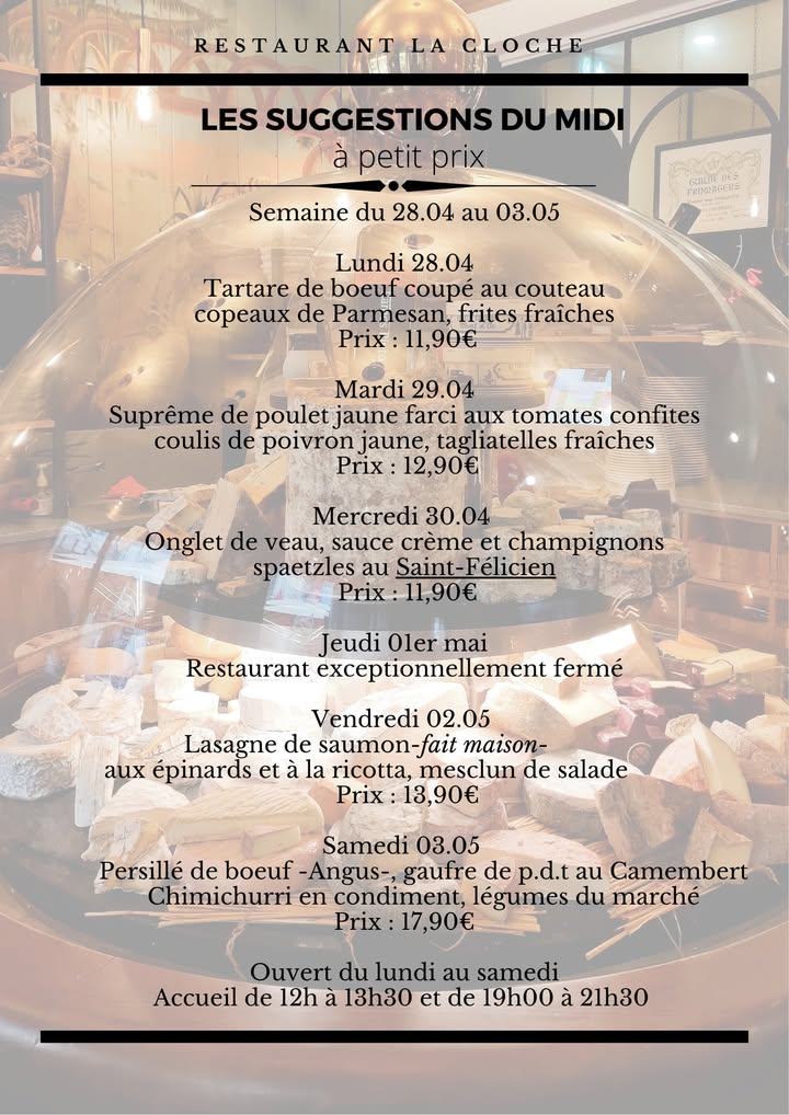 Au programme cette semaine !😊 Bonne soirée et à demain 👋 #strasbourg #alsace #laclocheresto #food #fromage #cheeselover #restaurant #platdujour #restaurantstrasbourg