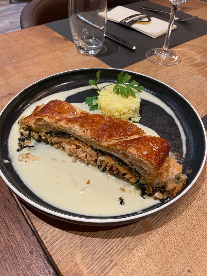 Bonjour, Ce midi, en suggestion: Lasagne de saumon -fait maison- aux épinards frais & salade du jour À plus 👋 #strasbourg #alsace #laclocheresto #restaurantstrasbourg