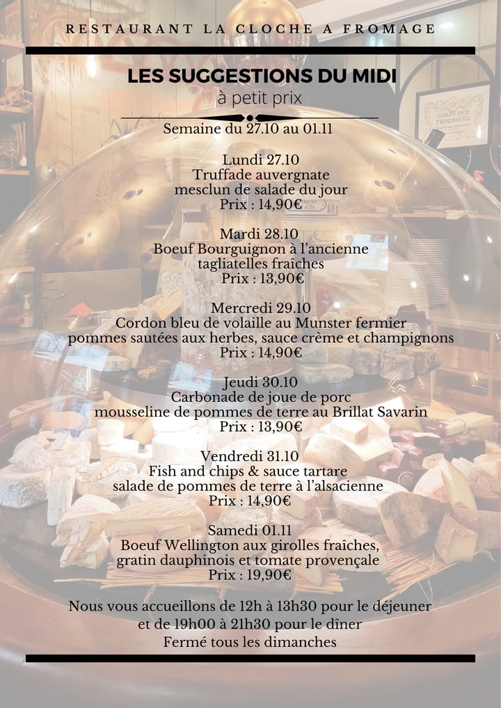 Au programme cette semaine !😊 Bonne soirée et à demain 👋 #strasbourg #alsace #laclocheresto #food #fromage #cheeselover #restaurant #platdujour #restaurantstrasbourg
