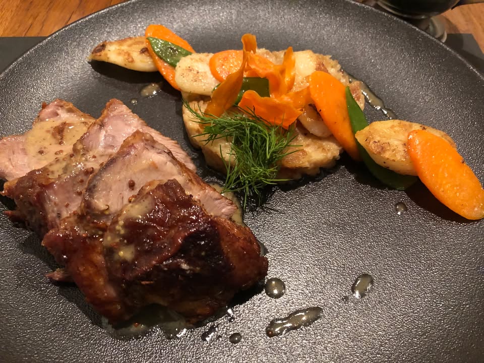 Ce samedi à déjeuner, Rôti de veau -cuisson basse température- au chorizo sauce Choron et pommes Sarladaises 😉