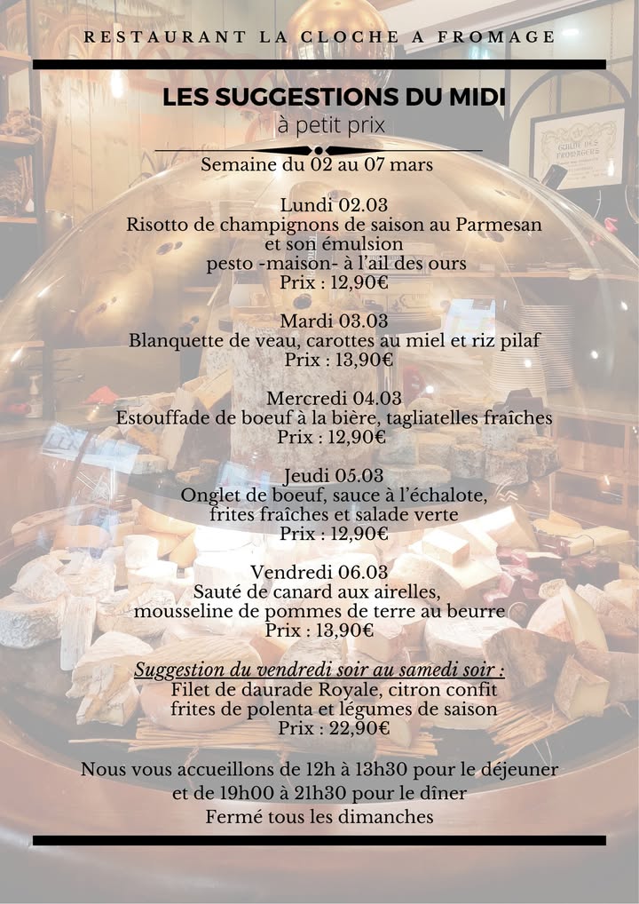 Au programme cette semaine !😊 Bonne soirée et à demain 👋 #strasbourg #alsace #laclocheresto #food #fromage #cheeselover #restaurant #platdujour #restaurantstrasbourg
