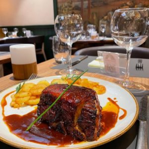 Ce samedi à déjeuner, Faux-filet grillé, sauce au Bleu de Gex paillasson de pommes de terre à la […]