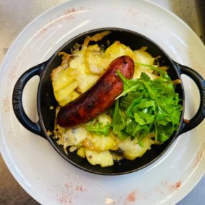 Saucisse artisanale poêlée sur son lit de choucroute pommes vapeur ! 😉 #strasbourg #alsace #laclocheresto #restaurantstrasbourg