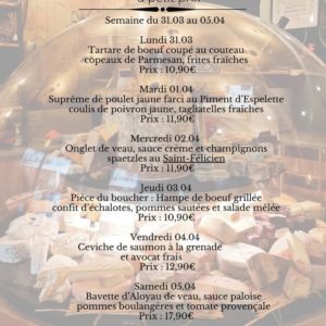 Bonjour, Ce samedi en suggestion Bavette d’aloyau de veau, sauce paloise pommes boulangères et légume du marché 🤗 […]