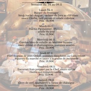 Bonjour, Ce midi, retrouvez notre fameux burger du fromager, Steak haché Angus, raclette du Jura affinée au vin […]