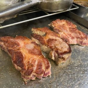 Ce midi ! Pièce du boucher grillée : -Cabacéro de Bellota- Croquettes de pommes de terre & ratatouille😋