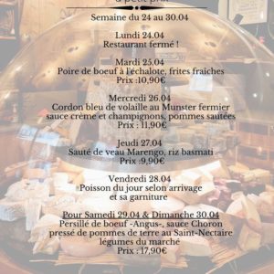 Voici ce qui vous attend cette semaine. !!! le restaurant est exceptionnellement fermé ce lundi !! Bonne journée […]