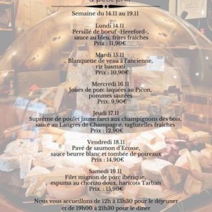 Hello ???? Pour rappel, à midi en suggestion ce sera : Médaillon de veau, sauce aux champignons des […]