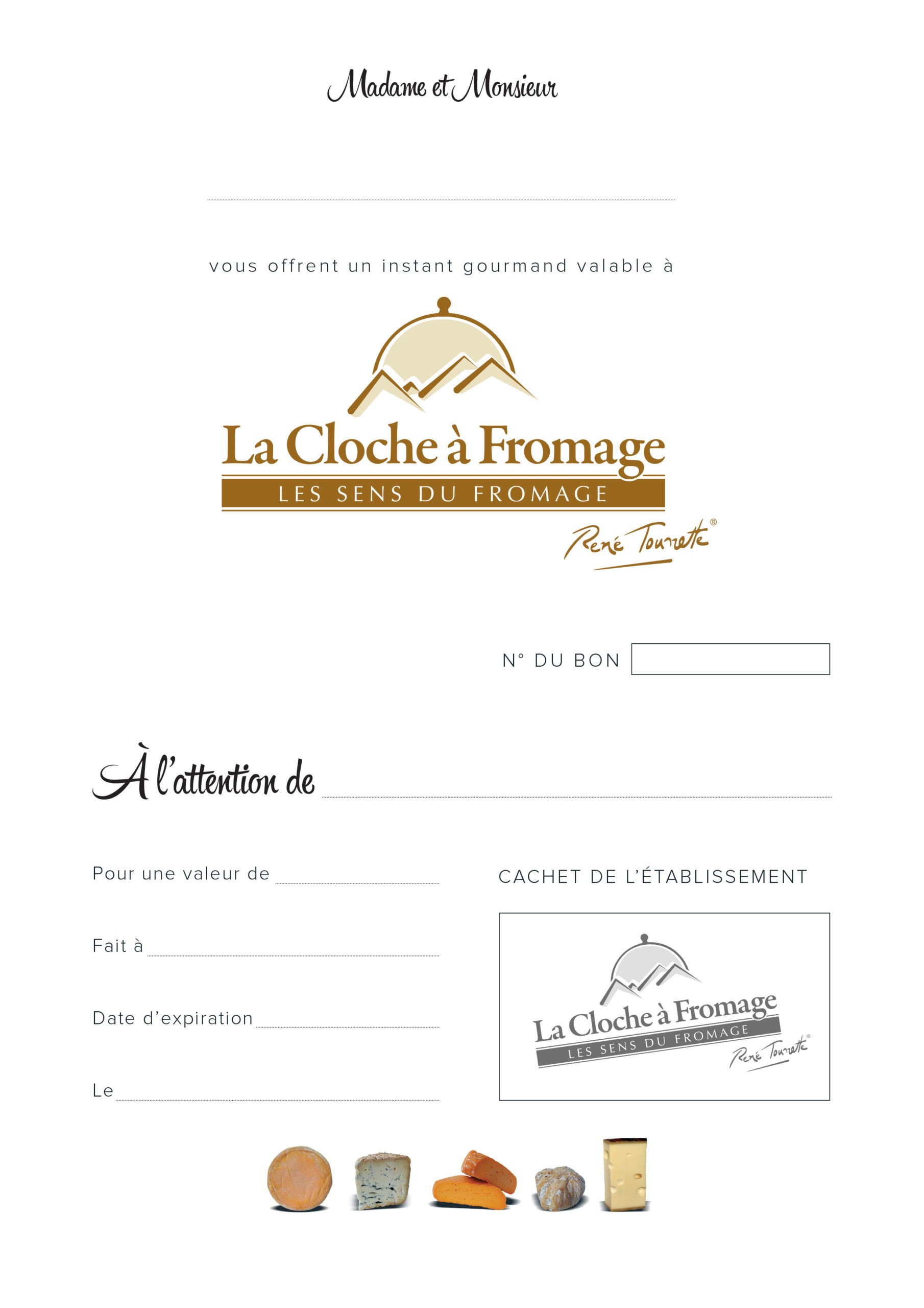 La valeur du bon pourra être dépensée dans tous les établissements La Cloche : boutiques, cave d’affinage et restaurant ! Elle est également valable sur le site internet.